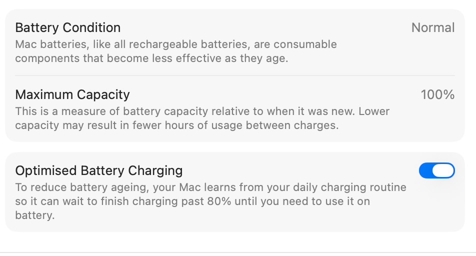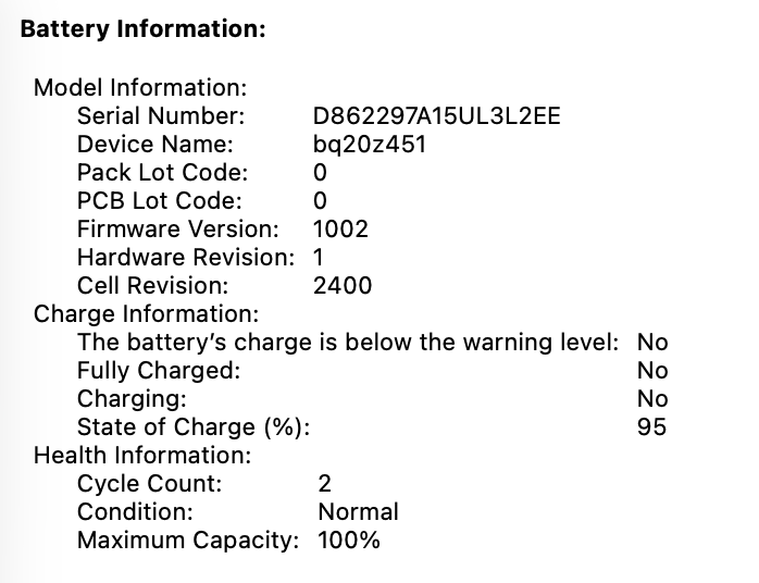 Battery Health: 100%, 2 cycles